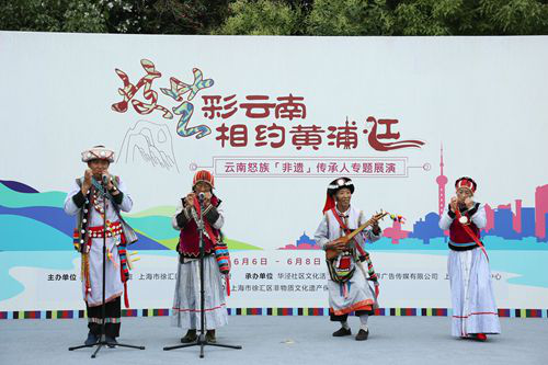 “技(jì )藝彩雲南 相約黃浦江——雲南怒族‘非遺’傳承人專題展演”為(wèi)第一期活動内容,主要推介的是怒族“非遺”傳承人及其傳統技(jì )藝。本次推介活動,以動靜結合的方式,在藝術中(zhōng)心展廳内對怒族支系、非遺項目、傳統文(wén)化(傳統民(mín)居、特色美食、傳統手工(gōng)技(jì )藝、節慶娛樂)、怒族地區(qū)社會發展等進行圖文(wén)、音視頻和實物(wù)的展示,郁伍林(省級“非遺”項目怒族民(mín)歌“哦得得”傳承人)、波金三(省級“非遺”項目怒族達比亞舞傳承人)、楊勇(省級“非遺”項目怒族口弦樂傳承人)等4名(míng)“非遺”傳承人在現場向開幕式觀衆展演了怒族口弦彈奏、“哦得得”彈唱和“達比亞”舞等非遺項目。