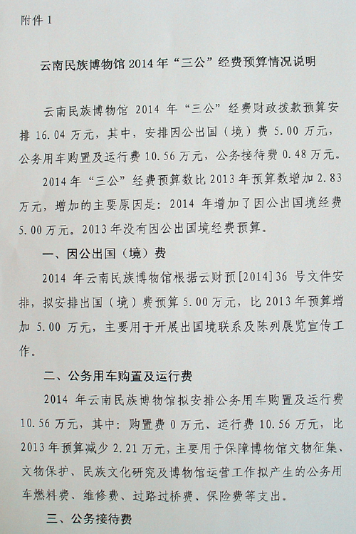 雲南民(mín)族博物(wù)館“ 三公(gōng)”經費預算公(gōng)開說明